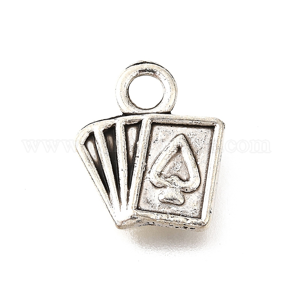 • Античное Серебро Сплавочные подвески тибетского стиля, без кадмия и без свинца, Игральные карты форма брелоки, античное серебро, 14x12x2 мм, отверстие : 2.5 мм, Около 600 шт / 1000 г
