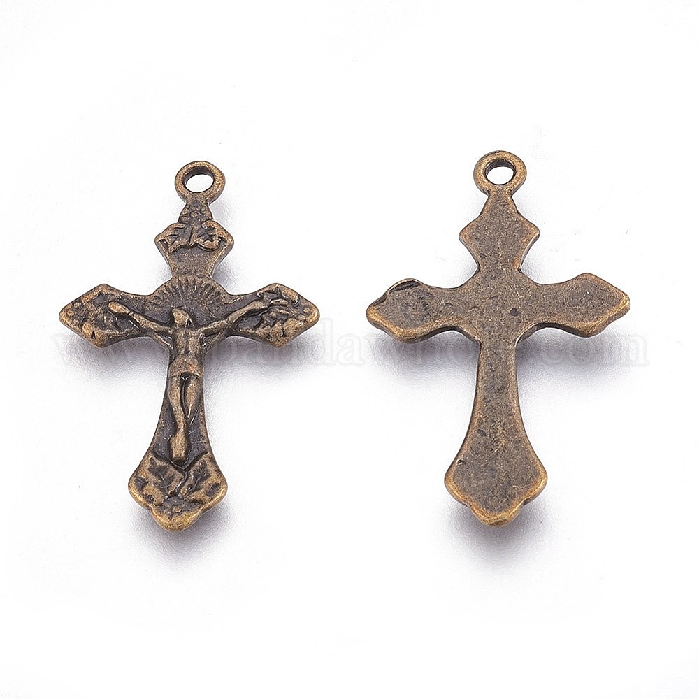 Подвески в тибетском стиле , на Пасху, без свинца и без кадмия, кулон крест распятия, 33.5x20.5x2.5 мм, отверстие : 2 мм