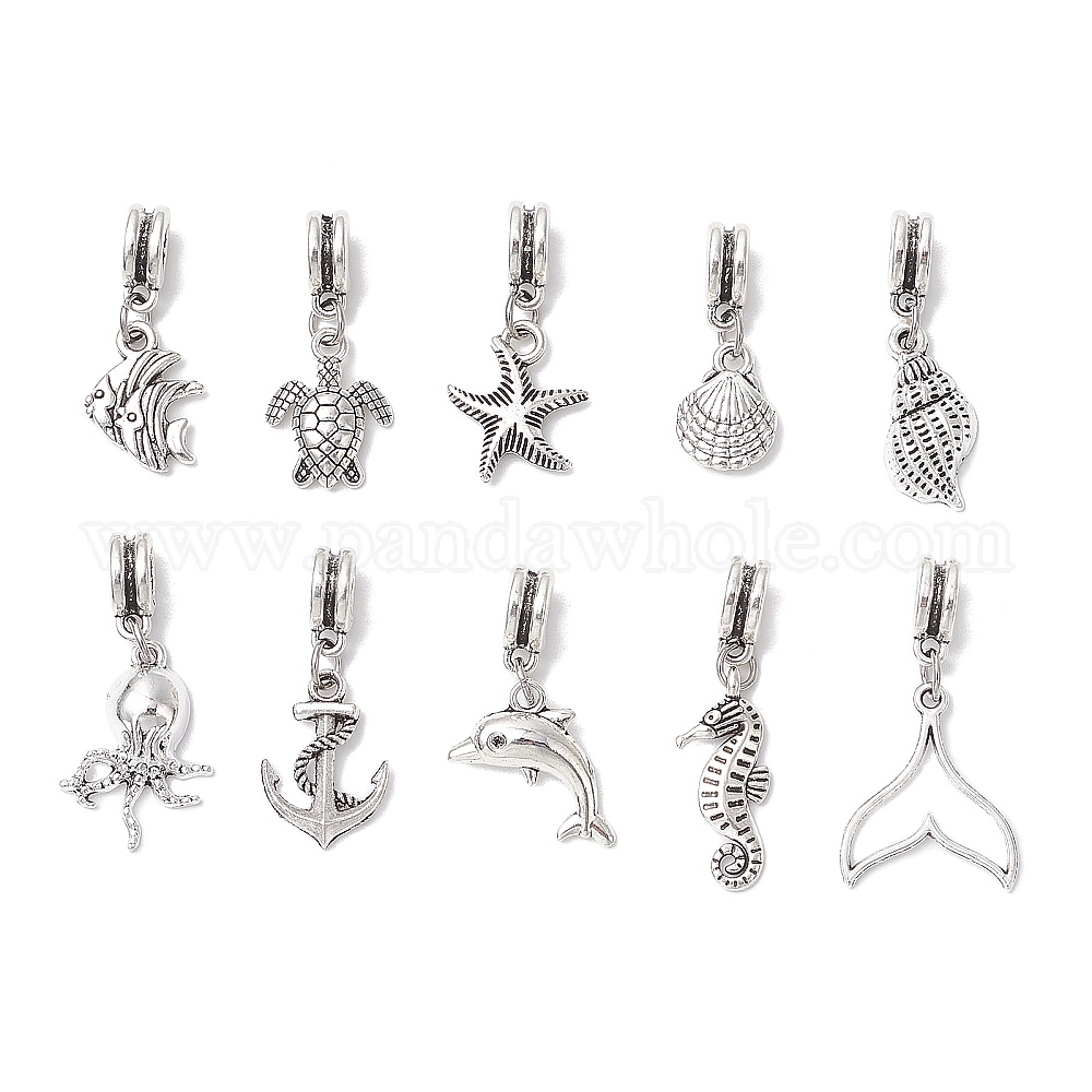 • Античное Серебро Подвески из сплава в тибетском стиле с морской тематикой, античное серебро, 24.5~34.5 мм, отверстие : 4.5 мм