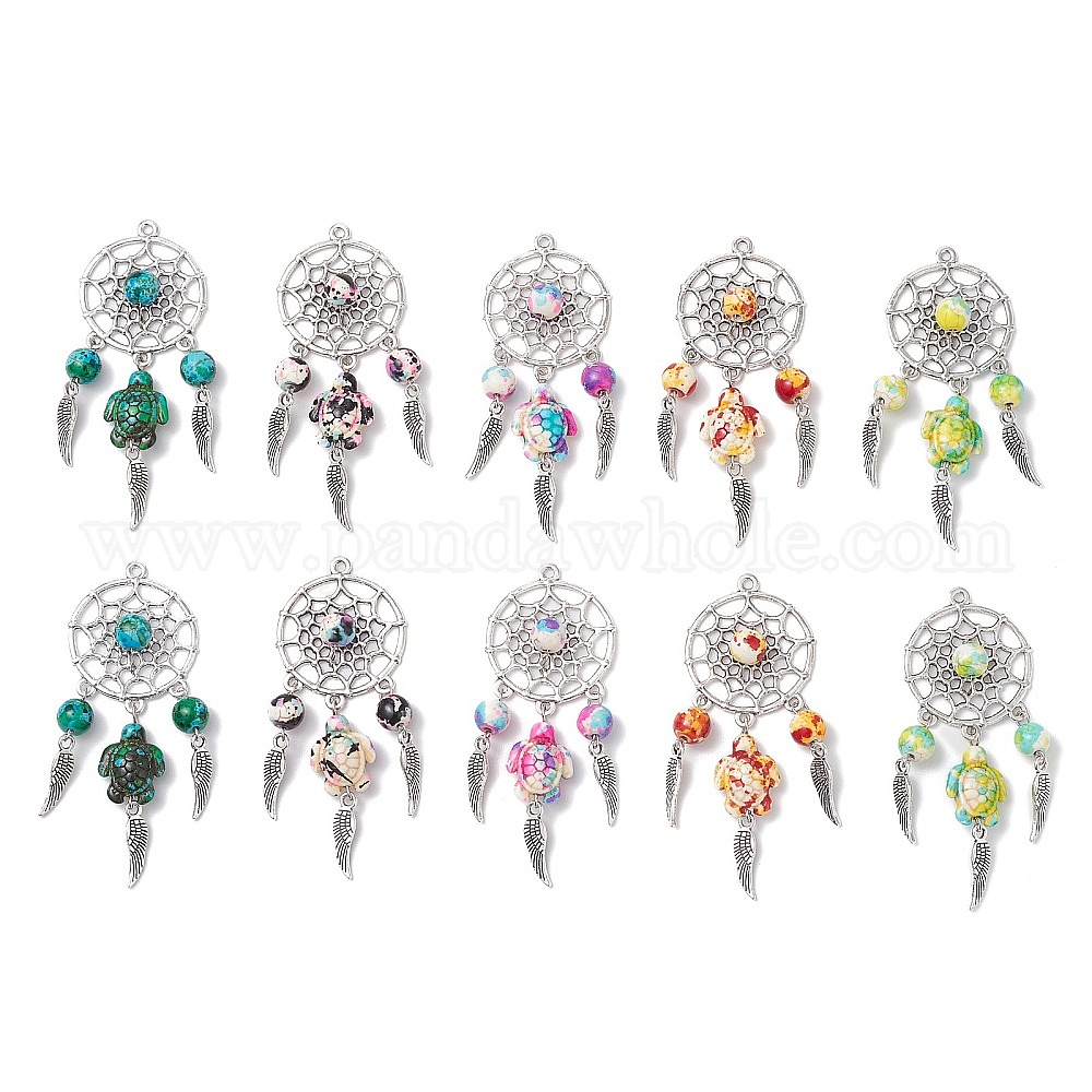 Тканая сетка / паутина с подвесками из перьевого сплава, с подвесками из синтетических бирюзовых бусин