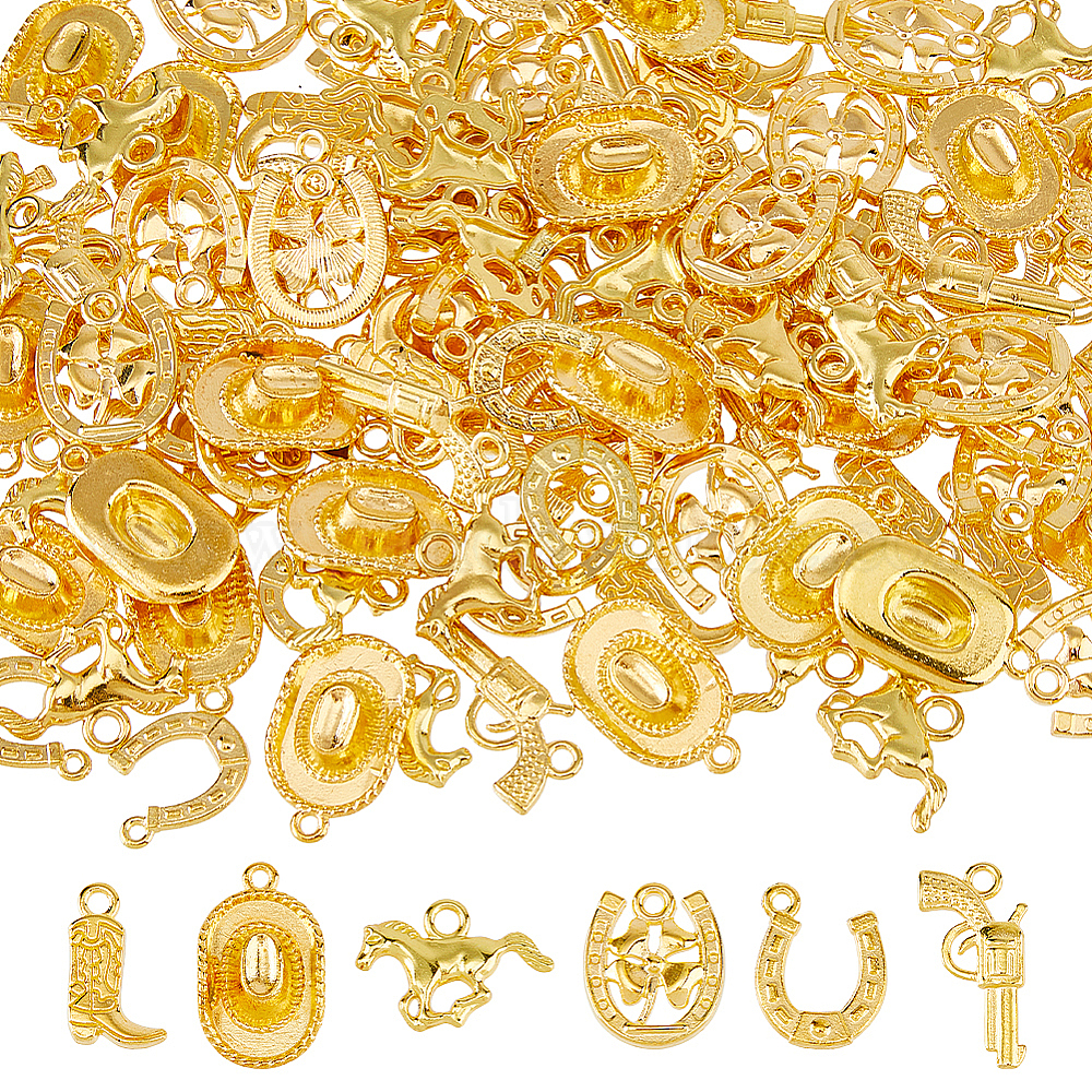• Золотой 120 шт 6 стили подвески из сплава, золотые, 14~22x11~21x2~5 мм, отверстие : 1.4~2.5 мм, 20 шт / стиль