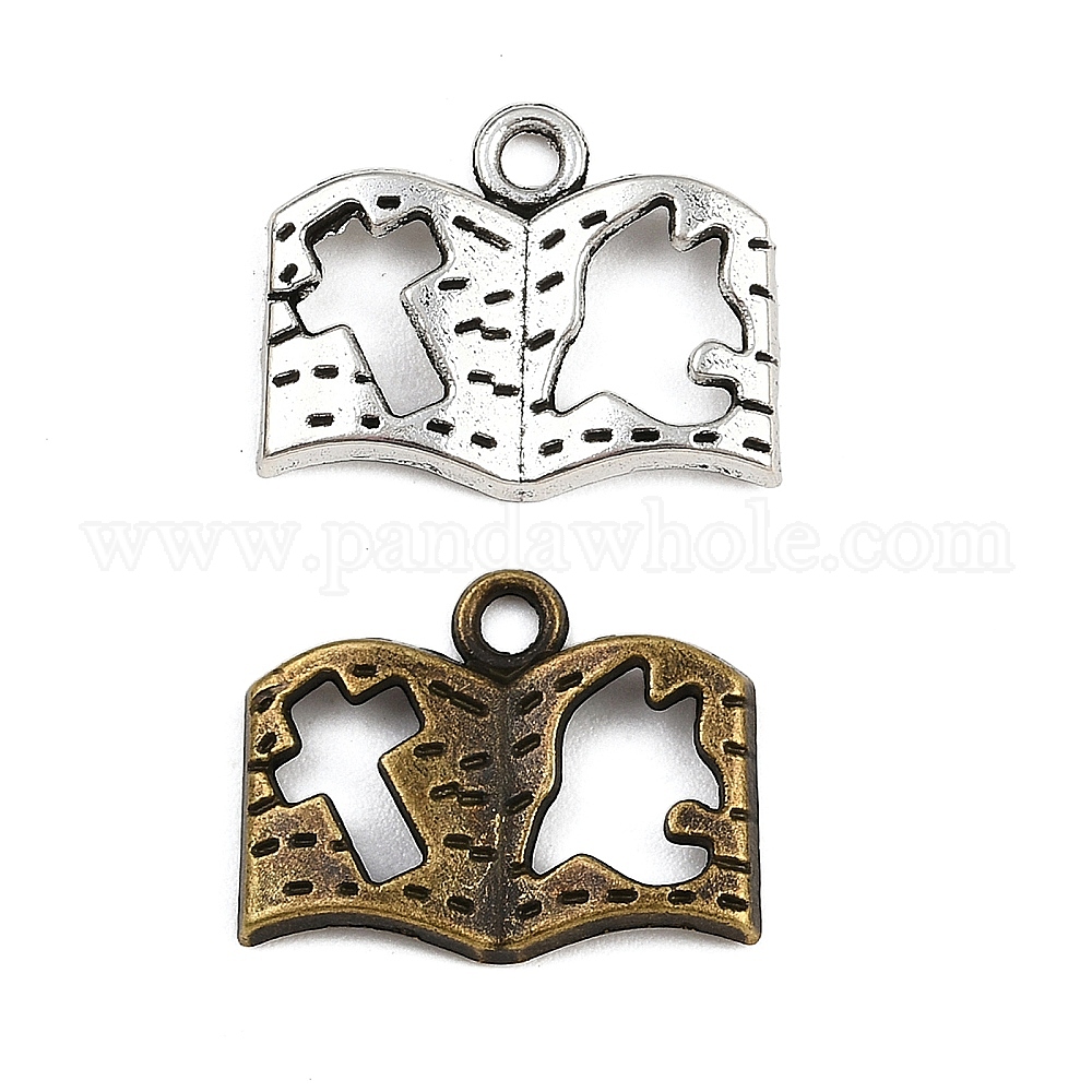 • Античное Серебро Сплавочные подвески тибетского стиля, Книга с крестом, античное серебро, 13x17x2 мм, отверстие : 1.8 мм