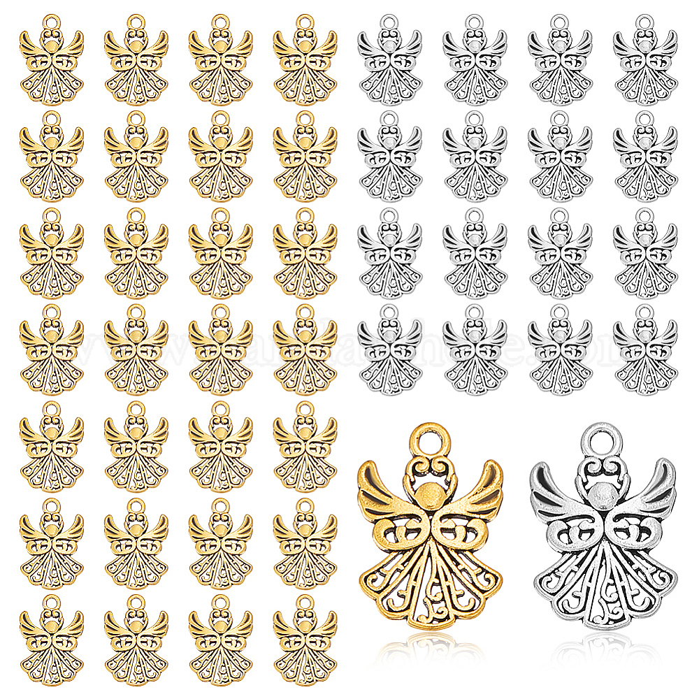 100 шт 2 цвета подвески из сплава в тибетском стиле, без кадмия и без свинца, ангел