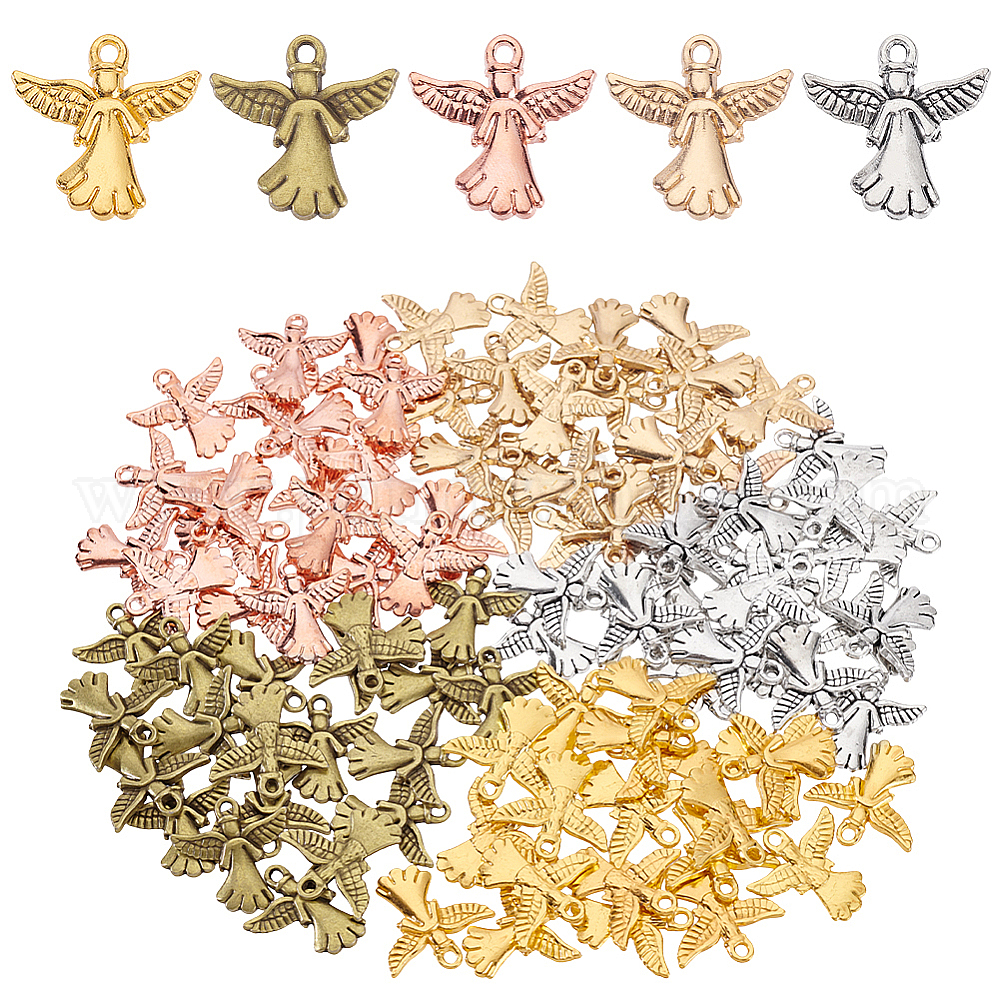 100 шт 5 цвета подвески из сплава в тибетском стиле, ангел