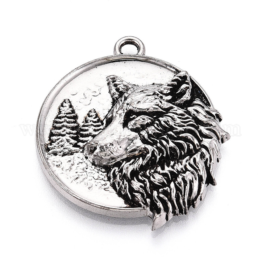Сплавочные подвески тибетского стиля, плоский круглый и волк, без кадмия и без свинца