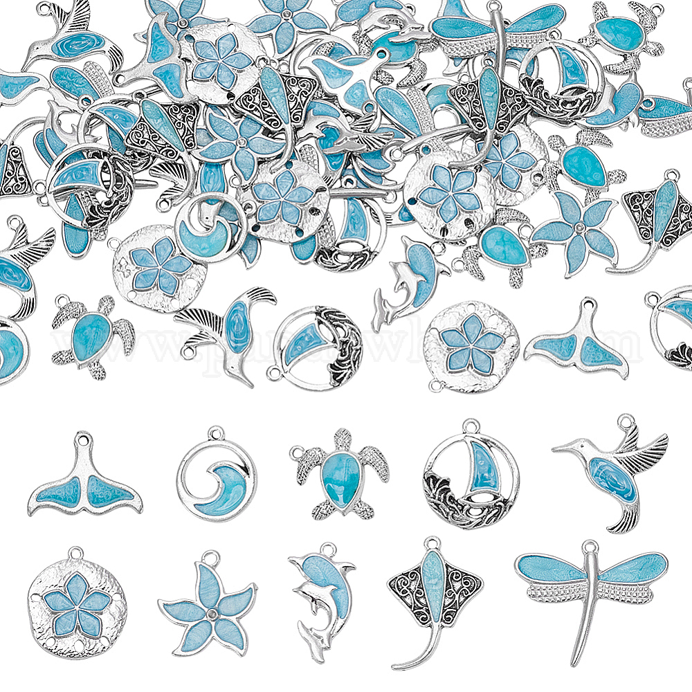 60 шт 10 стили подвески из цинкового сплава в тибетском стиле, с эпоксидной смолой