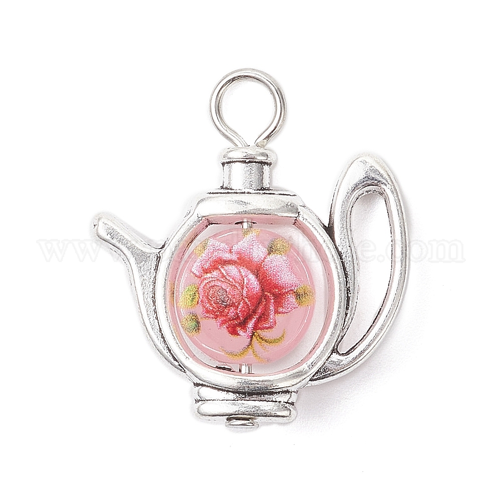 Сплавочные подвески тибетского стиля, чайник, со стеклом и железной петлей, античное серебро