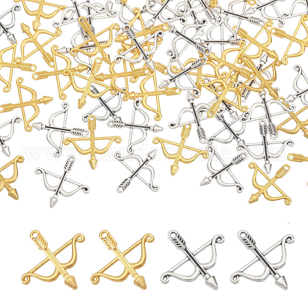 • Античный Серебристый & Золотой 100 шт 2 цвета подвески из сплава в тибетском стиле, стрелка, старинное серебро & золотой, 25x25 мм