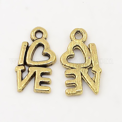 Идеи подарка дня влюбленных тибетский стиль сплава кулон, без свинца, любить, длиной около 14 мм , шириной 8 мм , толщиной 1 мм , отверстие : 1 мм