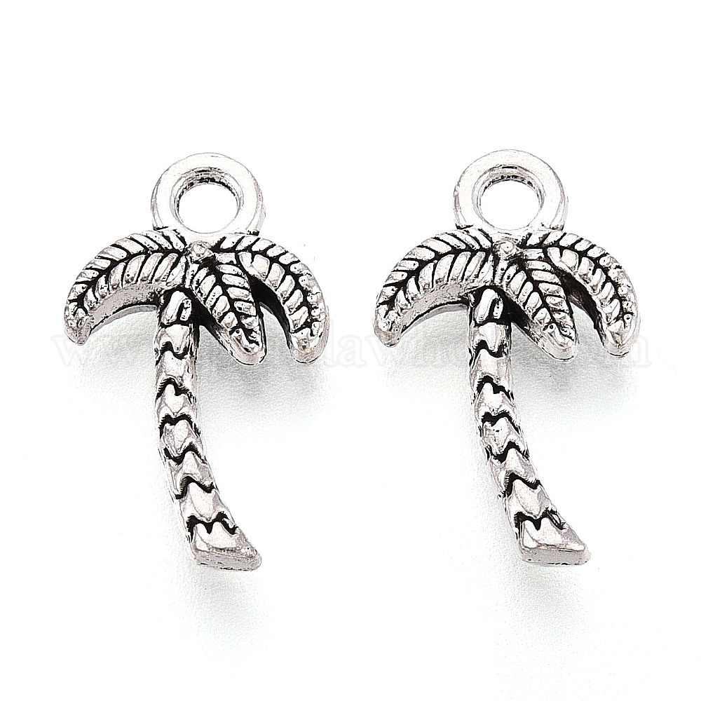• Античное Серебро Сплавочные подвески тибетского стиля, очарование кокосового дерева, античное серебро, 17.5x10.5x2.8 мм, отверстие : 2 мм, Около 1428 шт / 1000 г
