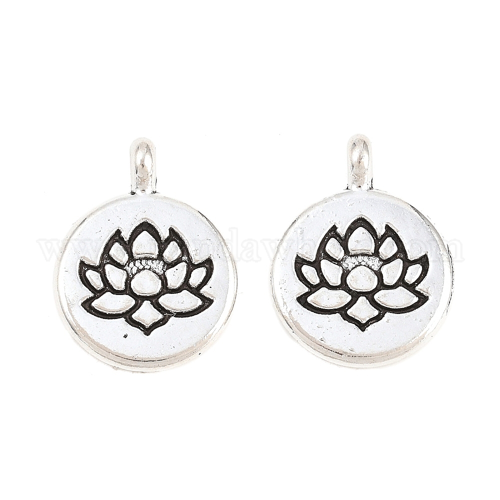 • Античное Серебро Сплавочные подвески тибетского стиля, цветок лотоса прелести, античное серебро, 20x15x2 мм, отверстие : 1.6 мм