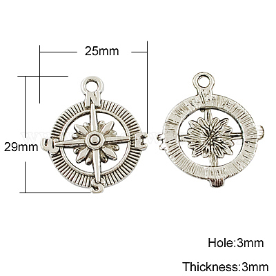 Сплавочные подвески тибетского стиля, без свинца и без кадмия, компас, 29x25x3 мм, отверстие : 3 мм