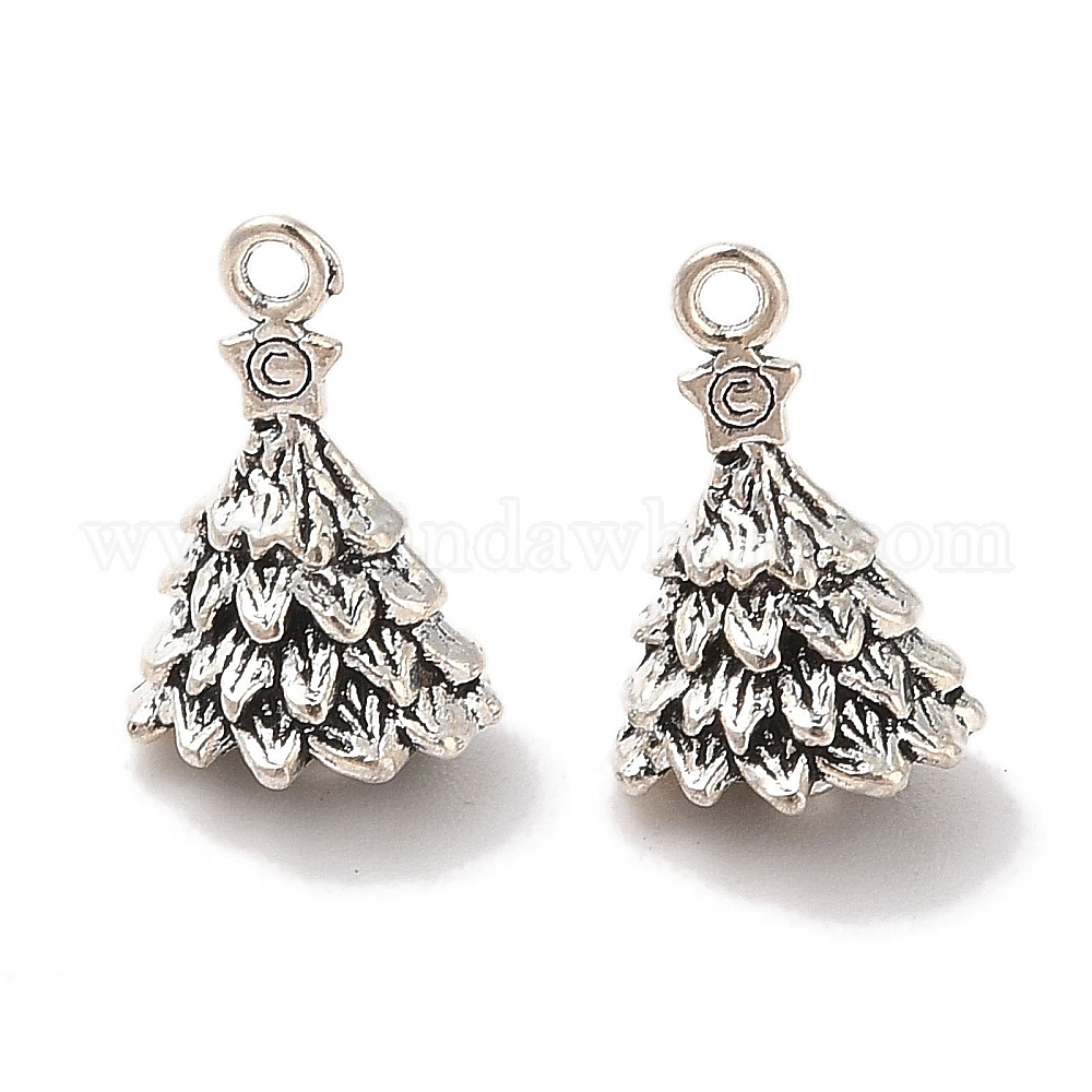 Сплавочные подвески тибетского стиля, без свинца и без кадмия, рождественская елка, на Рождество, 18x12x12 мм, отверстие : 2 мм