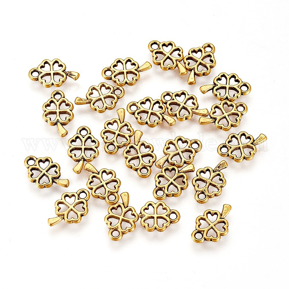 Подвески тибетского стиля, без кадмия и без свинца, Четыре листа клевера, 10x6x1 мм, отверстие : 1 мм