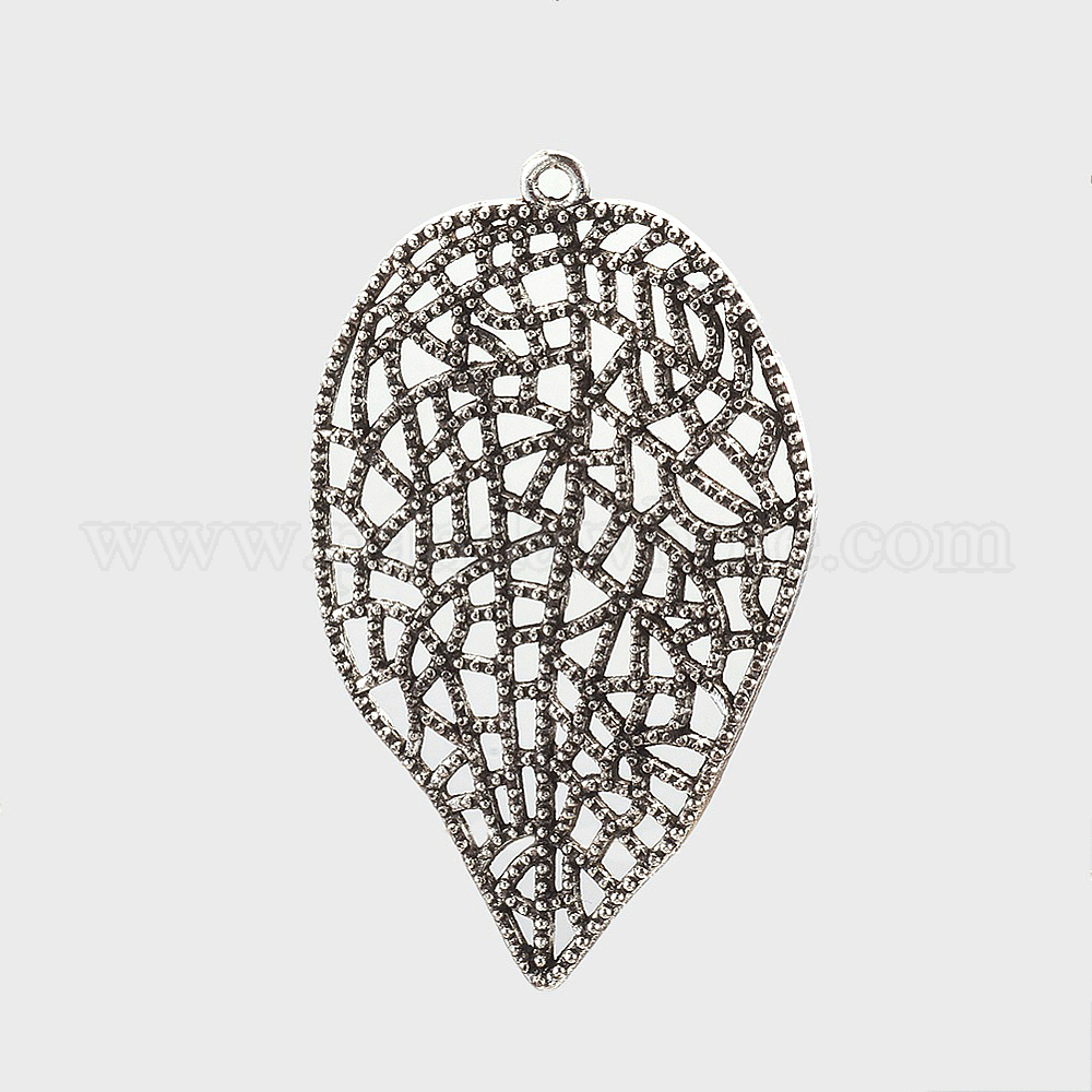 Листьев сплава большие кулоны, 59x37x2 мм, отверстие : 2 мм