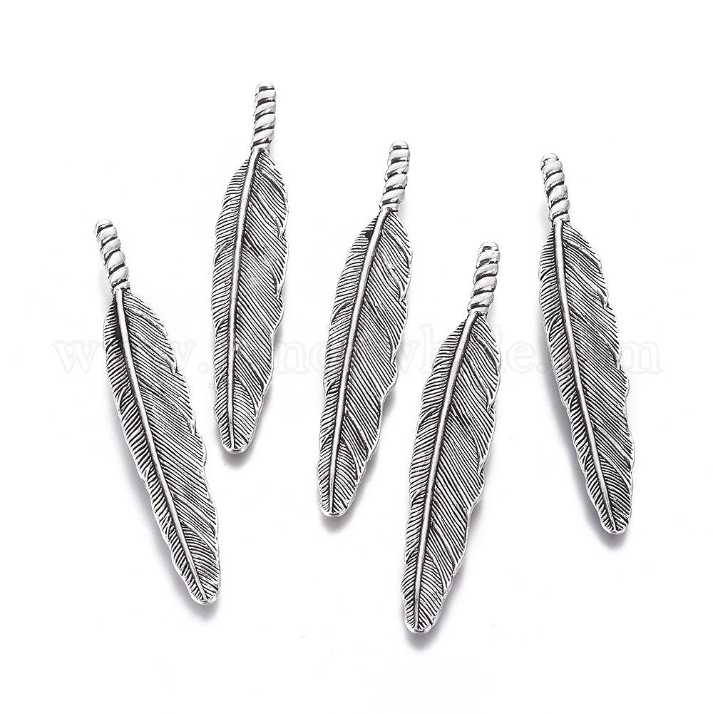 Тибетский стиль сплава большие кулоны перо, без кадмия и без свинца, 80x14x7 мм, отверстия : 6x3 mm , 151 шт / 1000 г