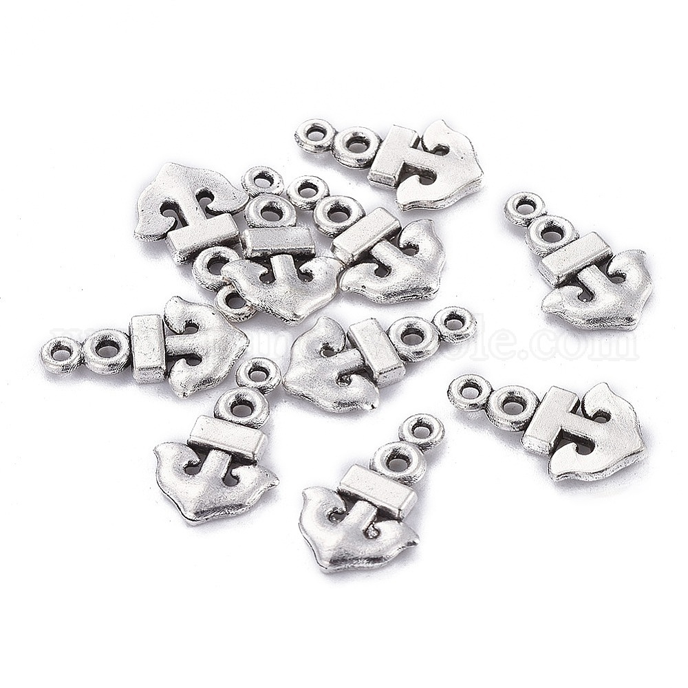 • Античное Серебро Сплавочные подвески тибетского стиля, якорь, без кадмия, без никеля и без свинца, античное серебро, 17x10x2 мм, Отверстие : 1.5 мм , около 1420 шт / 1000 г