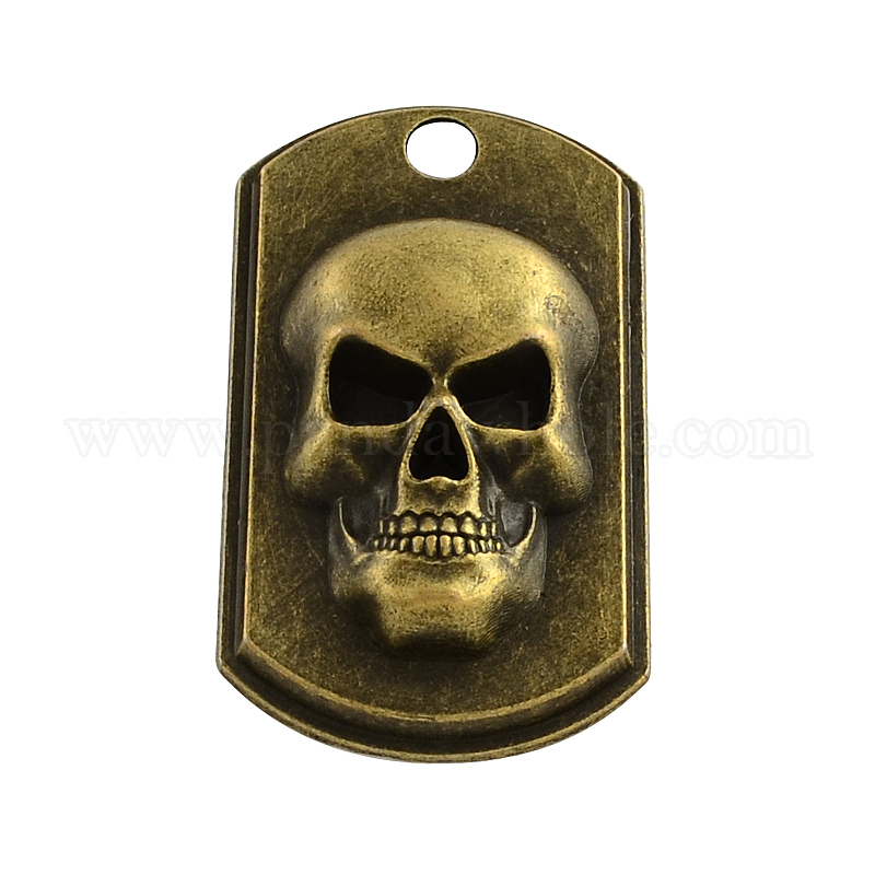 Тибетский стиль сплава прямоугольник с черепа подвесками, без кадмия и без свинца, 48x27x6 мм, Отверстие : 4.5 мм , около 138 шт / 1000 г
