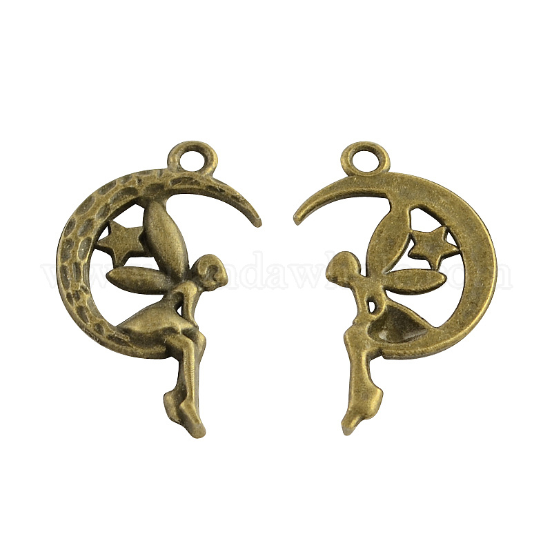 Тибетский стиль сплава луна с подвесками сказочных, Хэллоуин, без кадмия и без свинца, 26x14x2 мм, Отверстие : 2 мм , около 952 шт / 1000 г