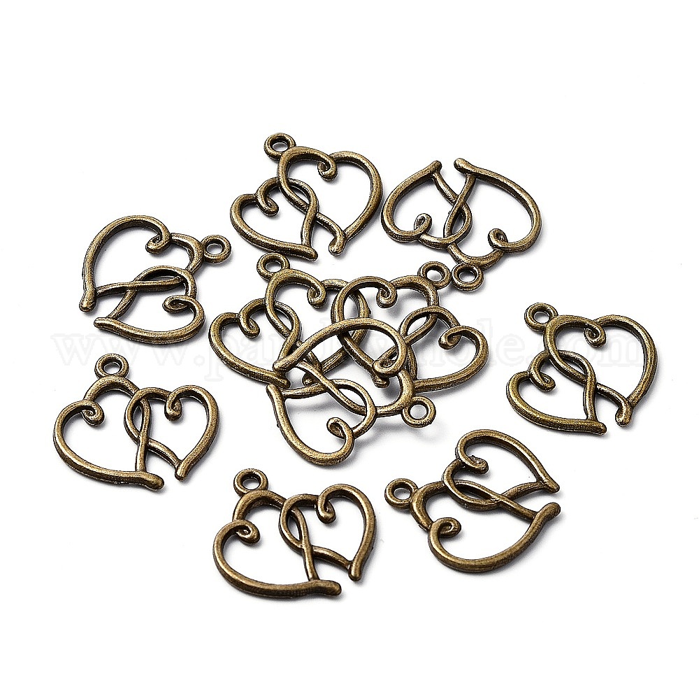 Тибетский стиль сплава сердца к сердцу подвесками, без кадмия и без свинца, 19.5x19x2 мм, Отверстие : 2 мм , около 1265 шт / 1000 г