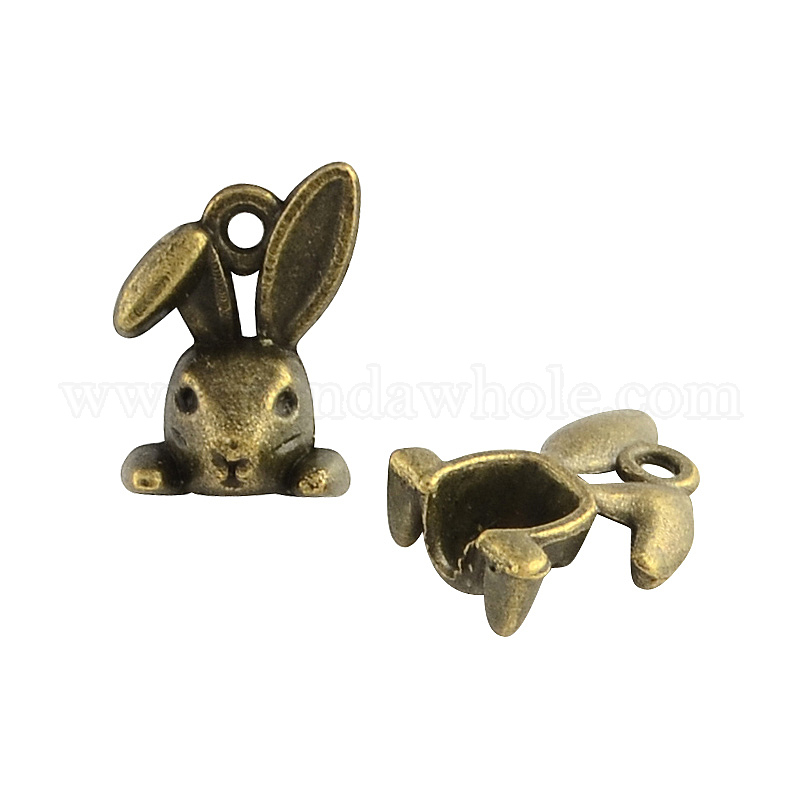 Тибетский стиль Сплав Кролик прелести, подвески кролика, без кадмия и без свинца, 14x10x4.5 мм, Отверстие : 2 мм , около 1250 шт / 1000 г