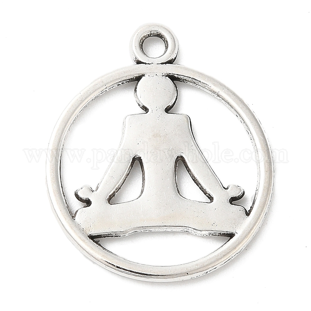 Сплавочные подвески тибетского стиля, без кадмия и без свинца, плоские круглые с йогой, 23.5x20x1.5 мм, Отверстие : 2 мм , около 605 шт / 1000 г