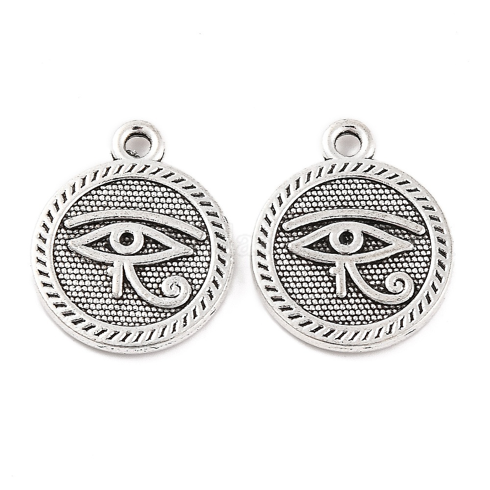 Сплавочные подвески тибетского стиля, без кадмия и без свинца, плоские круглые с сглаза, 18x15x2 мм, Отверстие : 2 мм , около 613 шт / 1000 г