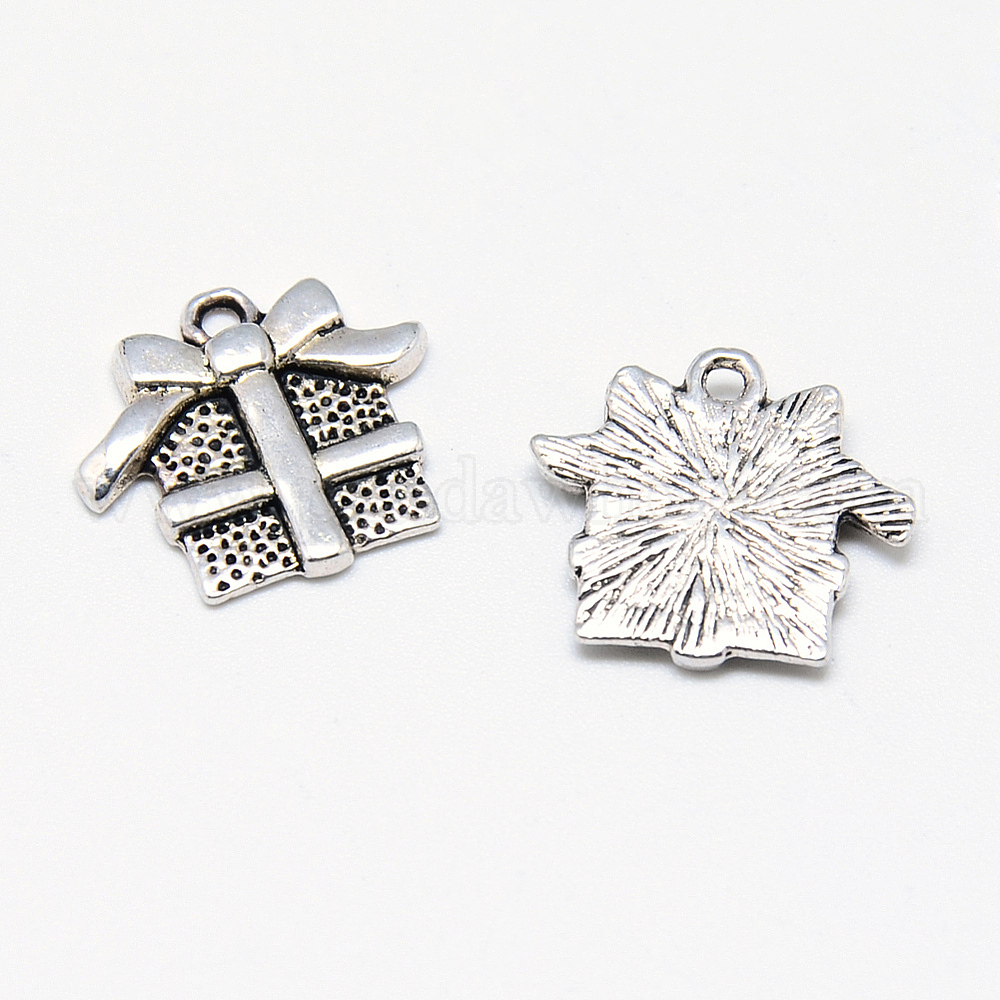 • Античное Серебро Подвески из сплава в тибетском стиле, Рождественский подарок, без кадмия и без свинца, античное серебро, 15x16x2 мм, Отверстие : 1 мм , около 790 шт / 1000 г