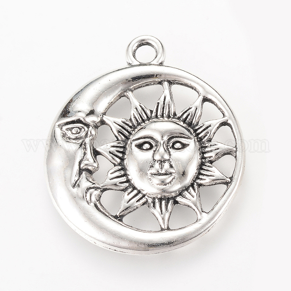 Подвески из сплава , плоские круглые с солнцем и луной, без кадмия и без свинца