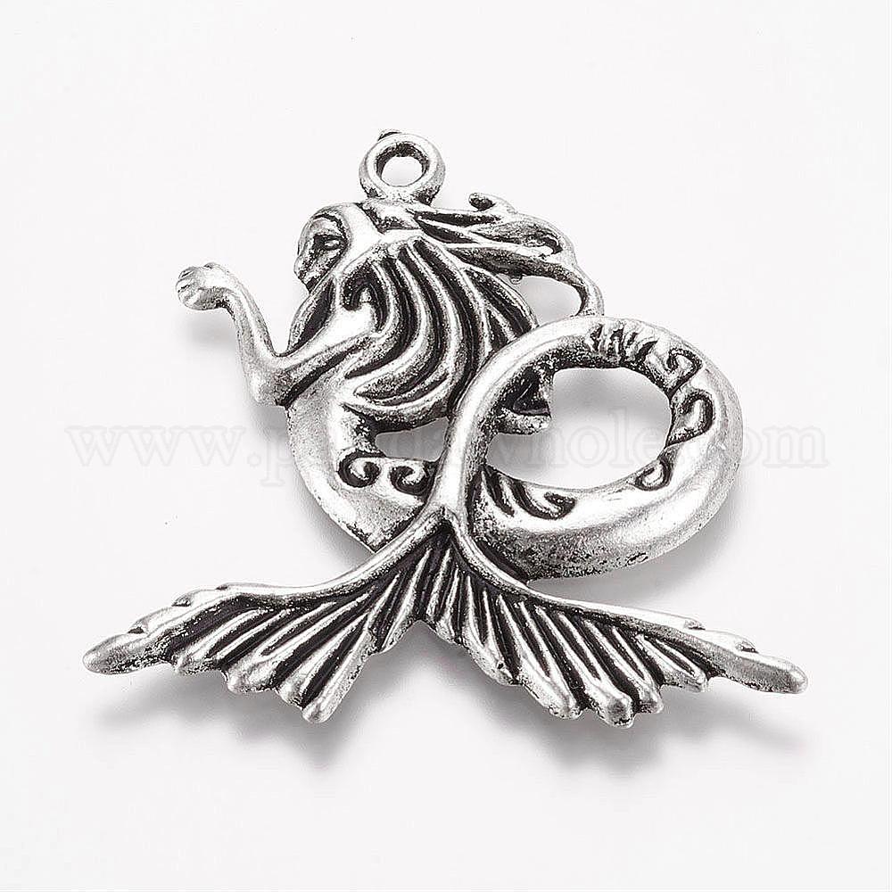 • Античное Серебро Сплавочные подвески тибетского стиля, русалка, античное серебро, 42.5x41x3 мм, отверстие : 2.5 мм