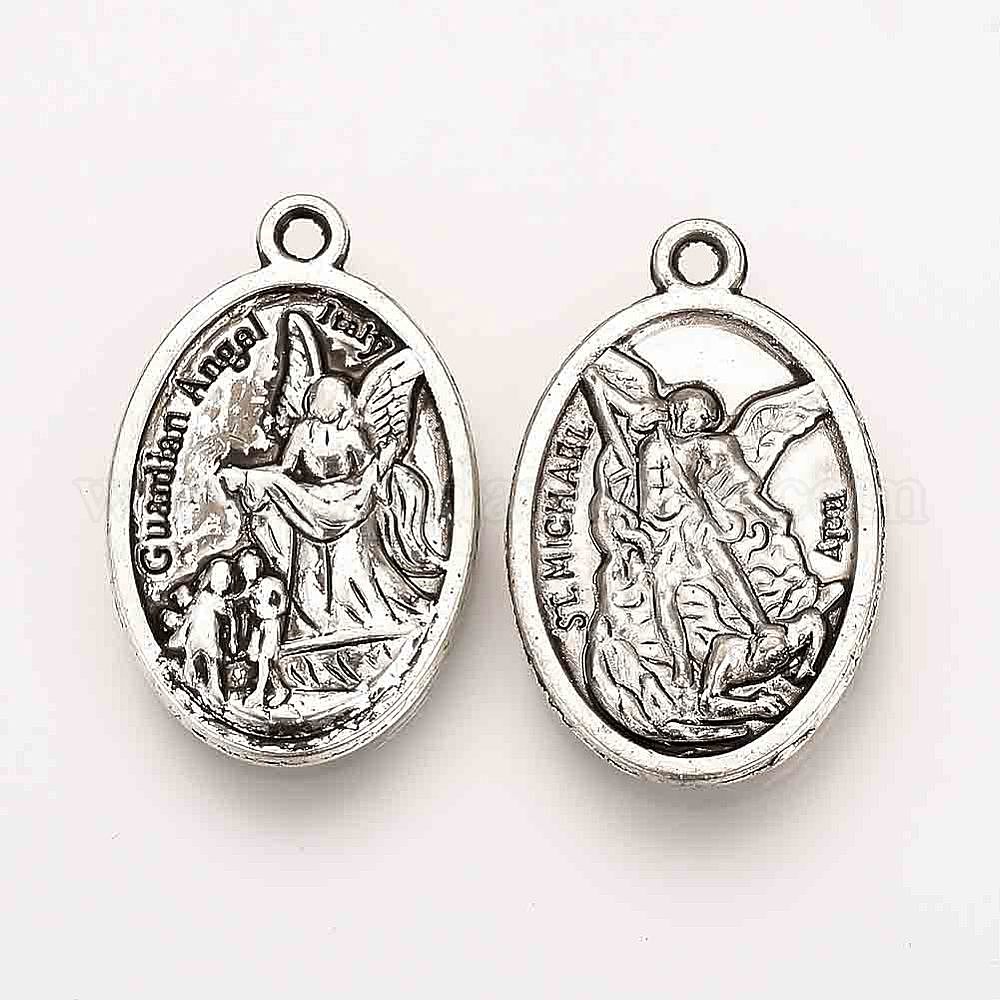 Сплавочные подвески тибетского стиля, овальные, без кадмия и без свинца, майкл и ангел-хранитель