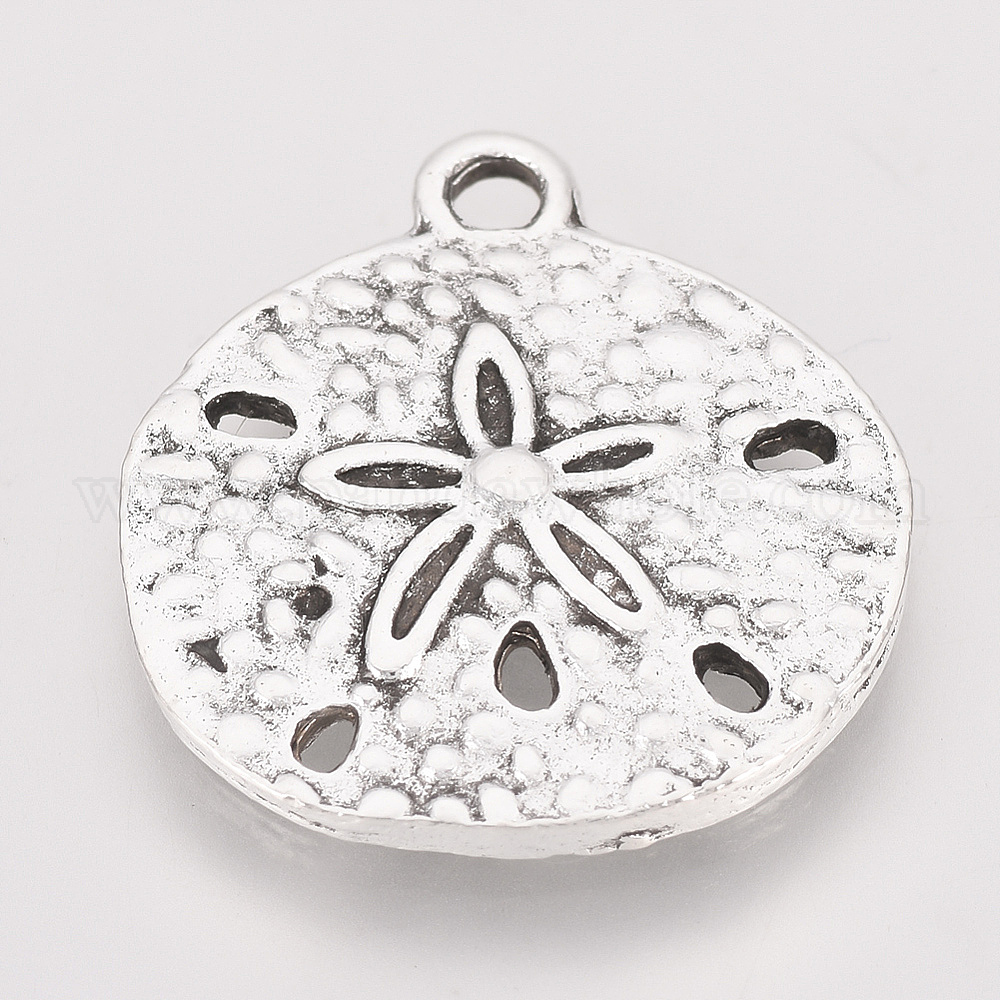 • Античное Серебро Сплавочные подвески тибетского стиля, шарм песчаного доллара, плоско-круглые, без кадмия и без свинца, античное серебро, 19x17.5x2 мм, отверстие : 1 мм, Около 480 шт / 1000 г
