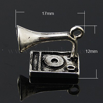 • Античное Серебро Талисман из сплава, граmmофон, без кадмия, без никеля и без свинца, античное серебро, 17x12x9 мм, отверстие : 2 мм