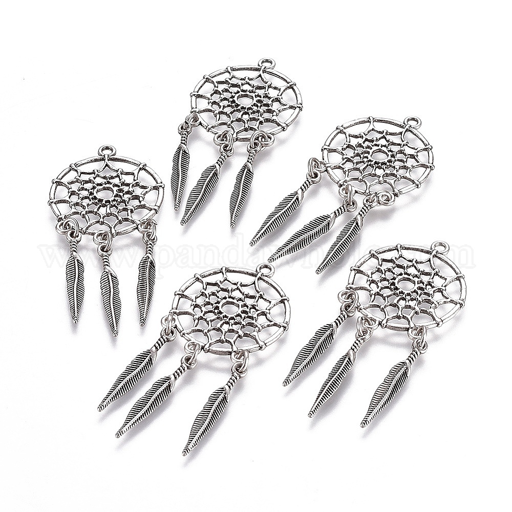 Сплавочные подвески тибетского стиля, тканая сеть / паутина с пером, без свинца, без никеля и без кадмия