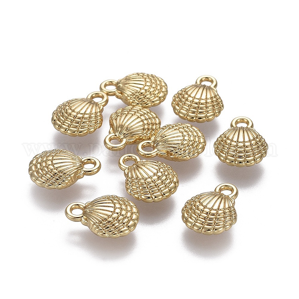 • Настоящее золото 18K Подвески из сплава , Тема океана, без свинца, без никеля и без кадмия, форма раковины гребешка, реальный 14 k позолоченный, 13.5x10x4 мм, отверстие : 1.8 мм