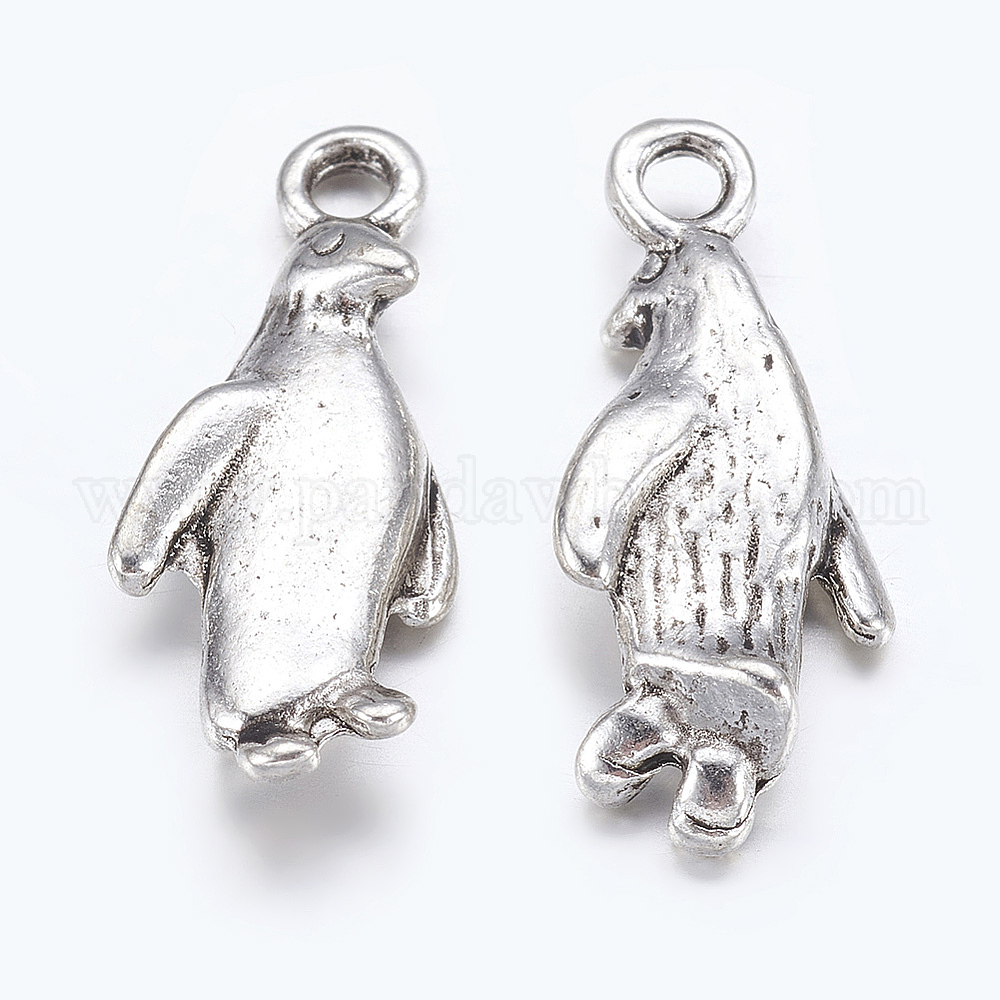 Сплавочные подвески тибетского стиля, без свинца и без кадмия, пингвин, 23x10x3.5 мм, отверстие : 2 мм