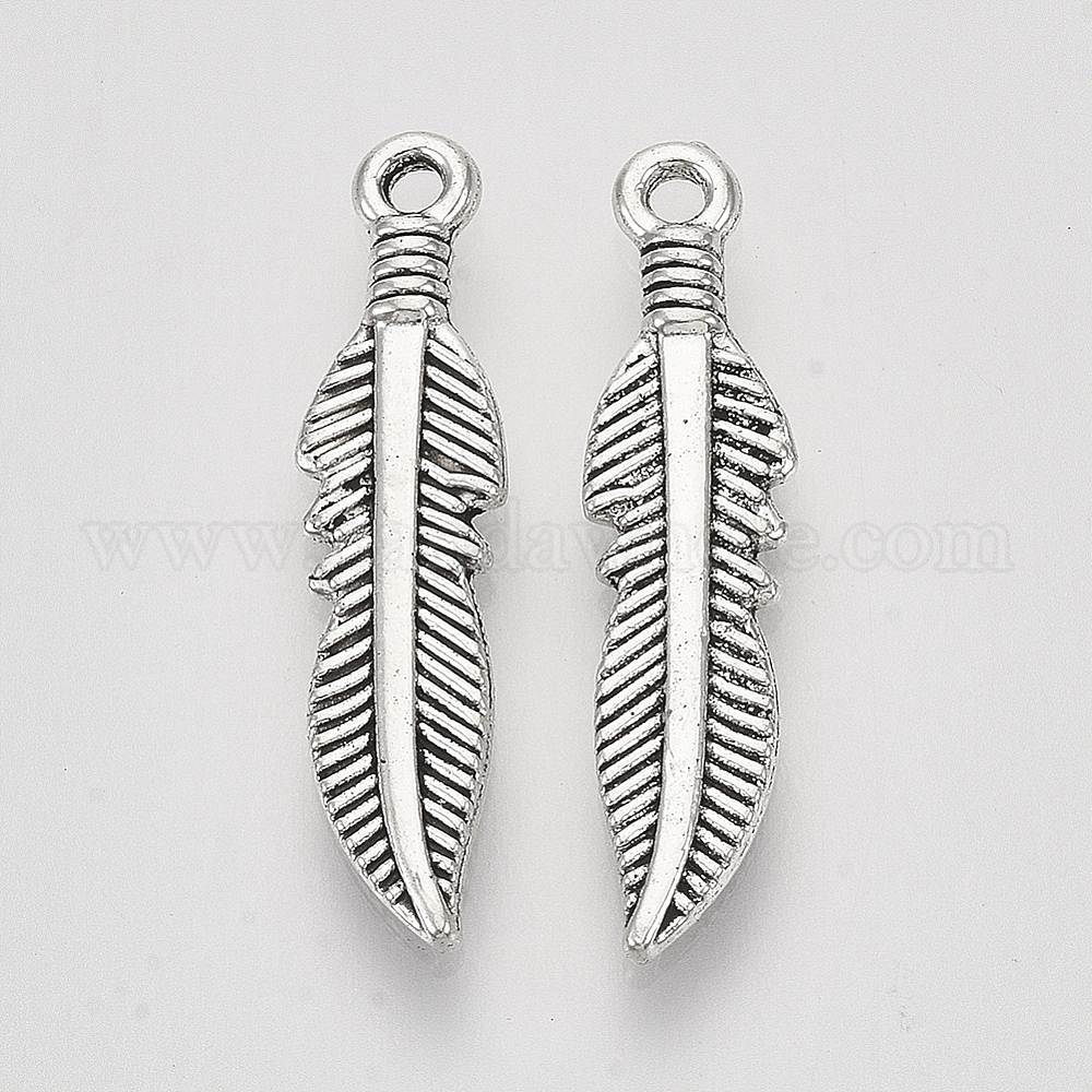• Античное Серебро Сплавочные подвески тибетского стиля, перо, без кадмия и без свинца, античное серебро, 24.5x5.5x2 мм, отверстие : 1.2 мм, Около 1600 шт / 1000 г