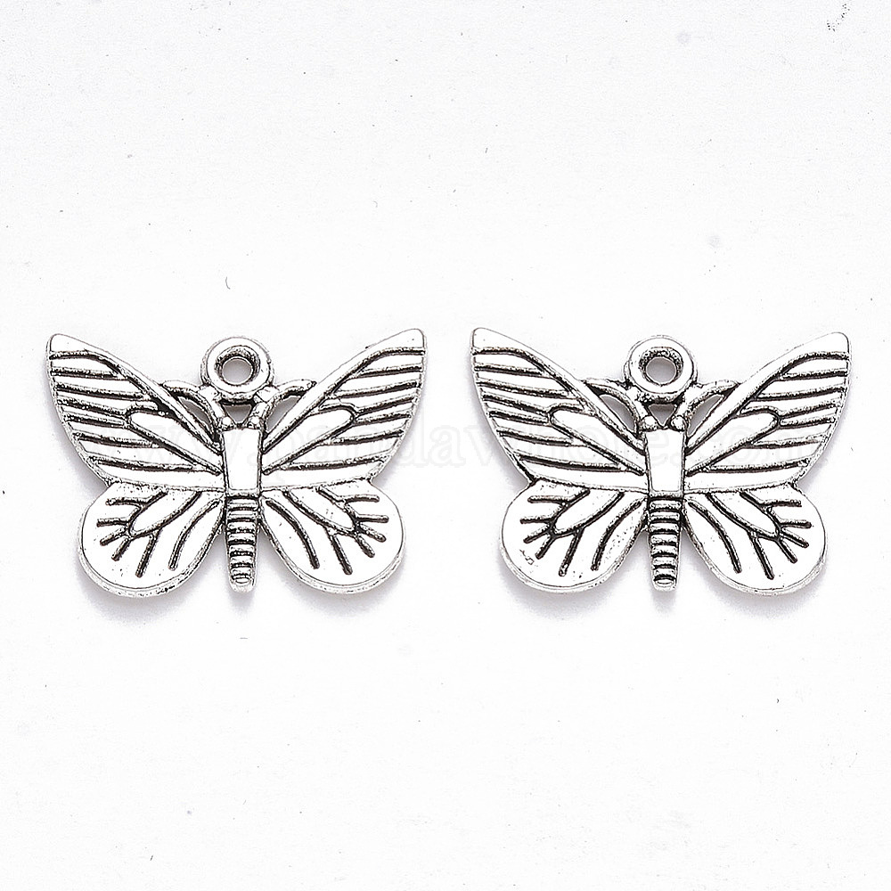 • Античное Серебро Сплавочные подвески тибетского стиля, бабочка, без кадмия и без свинца, античное серебро, 16x21.5x2 мм, Отверстие : 1.6 мм , около 600 шт / 1000 г
