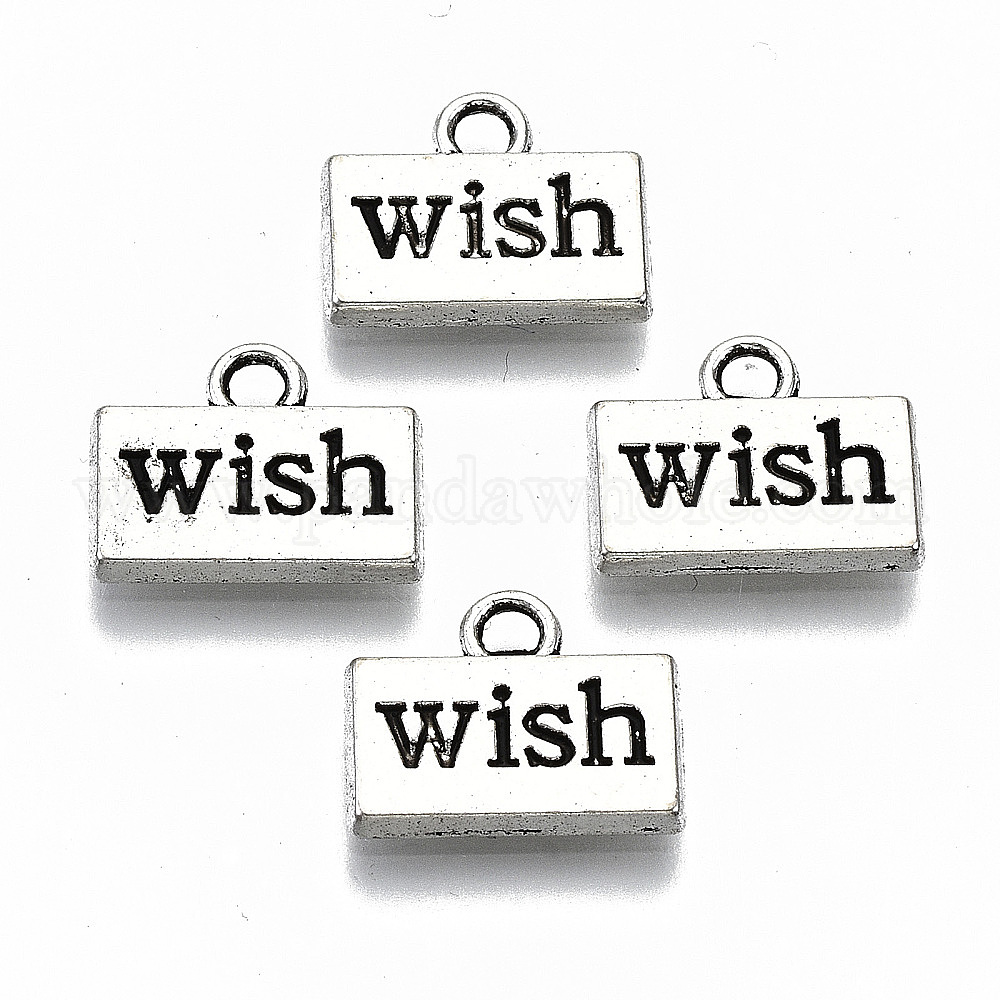 • Античное Серебро Подвески из сплава в тибетском стиле, прямоугольник со словом желание, без кадмия и без свинца, античное серебро, 10x13x2 мм, отверстие : 1.8 мм, Около 1000 шт / 1000 г