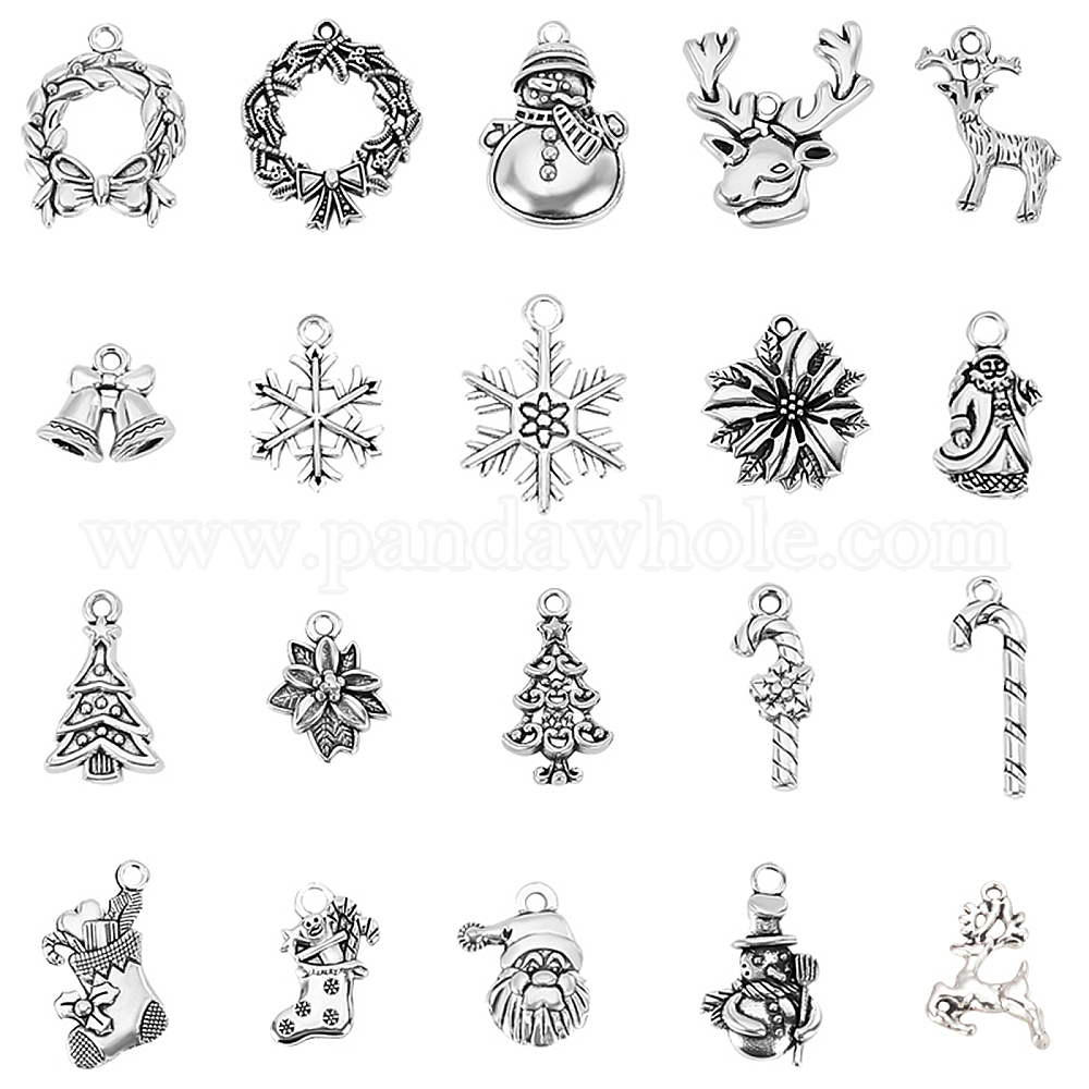 • Античное Серебро Новогодняя тема, Сплавочные подвески тибетского стиля, разнообразные, античное серебро, 60 шт / коробка