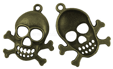 Подвески в тибетском стиле , череп, за день Хэллоуин, без свинца, 26x22x4.5 мм, отверстие : 1.5 мм