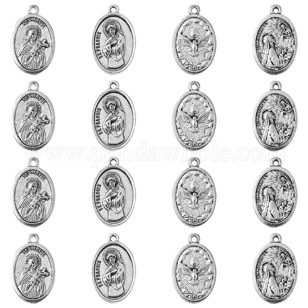 20 шт 4 подвески из сплава в тибетском стиле, ул. Фрэнсис ассизийской медали, овальные, без кадмия и без свинца