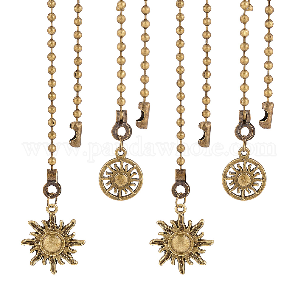 Удлинители цепи потолочного вентилятора из сплава: ширина около 0.12 дюйма (3 мм), 12.99~13.19 дюйм (330~335 мм) в длину, кольцо с солнцем: 0.79x0.63x0.08 дюйм (20x16x2 мм), подсолнечник: 1.10x0.96x0.09 дюйм (28x24.5x2.4 мм), 2 стиль, 2 шт / стиль, 4 шт / комплект, 2 наборы;