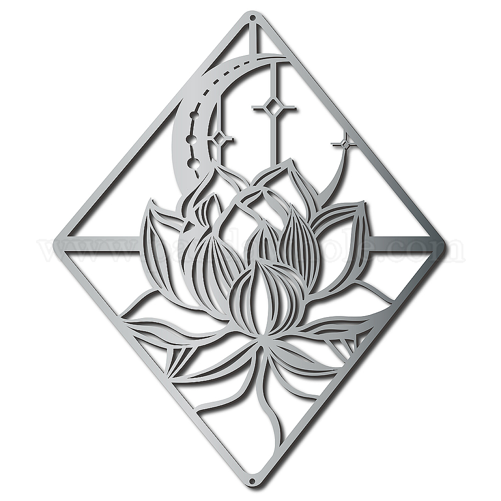 • Lotus Pattern Ромбовидные железные настенные знаки, художественная отделка стен металлом, для гостиной, Главная, офис, сад, кухня, отель, балкон, узор лотоса, 240x290x1 мм