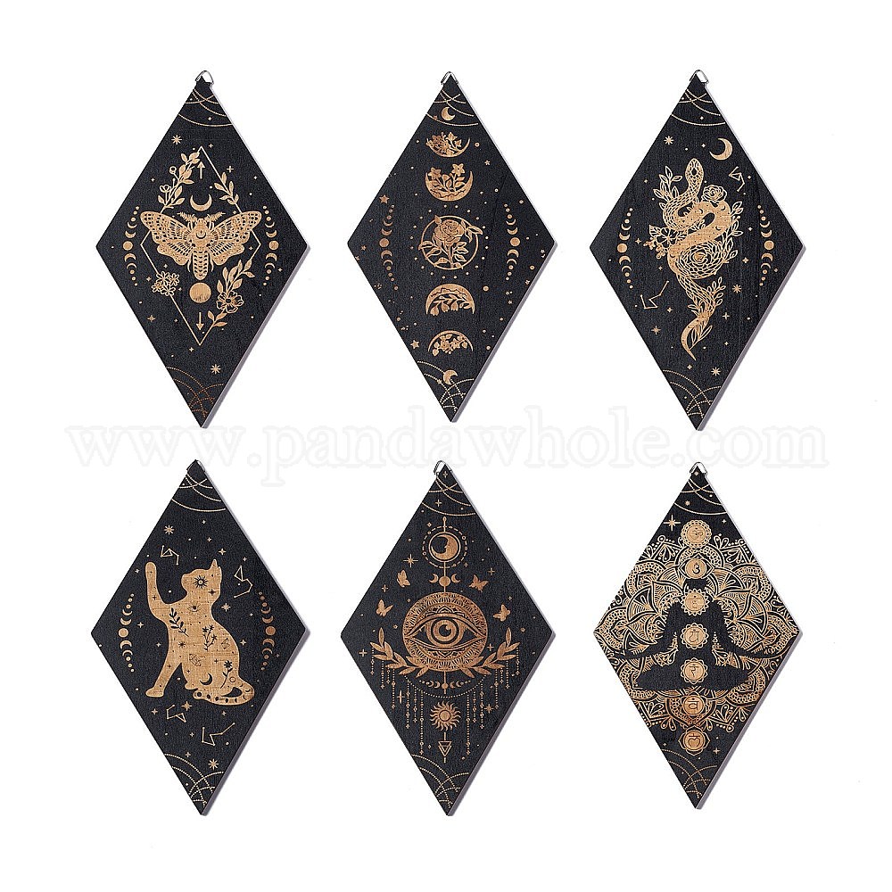 Ромб деревенский бохо деревянные настенные украшения, Настенная табличка с кошачьим глазом и солнцем и луной для домашней спальни, с железной фурнитурой с платиновым покрытием