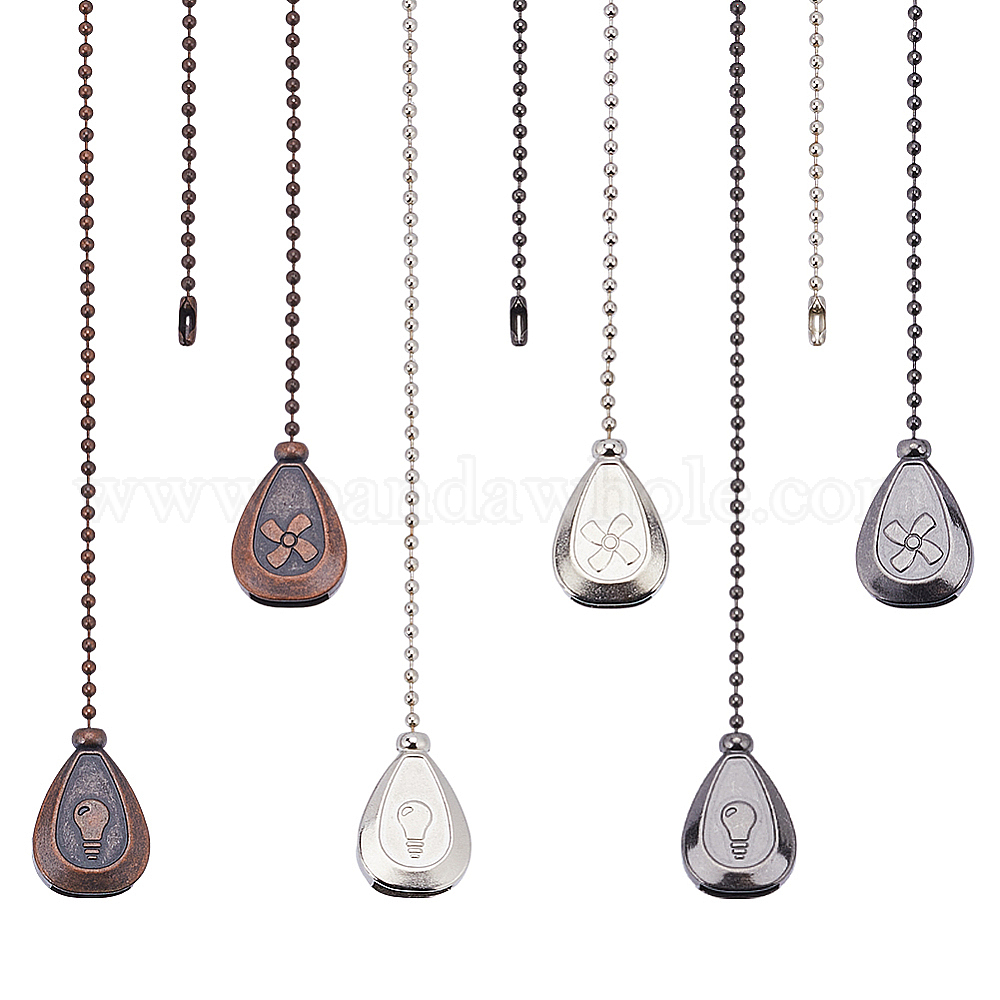 3 наборы 3 цвета сплав потолочный вентилятор тяговые цепи удлинители, с цепями железный шар, капля с подвеской в виде вентилятора и лампочки