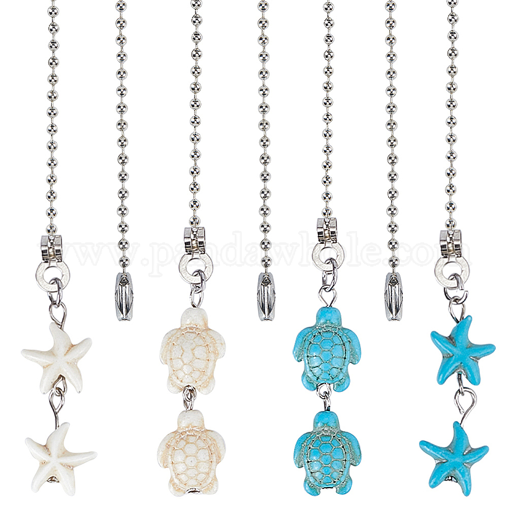 Удлинители тяговой цепи потолочного вентилятора из синтетического бирюзового цвета, Подвеска в виде морской звезды и морской черепахи, с цепями железный шар