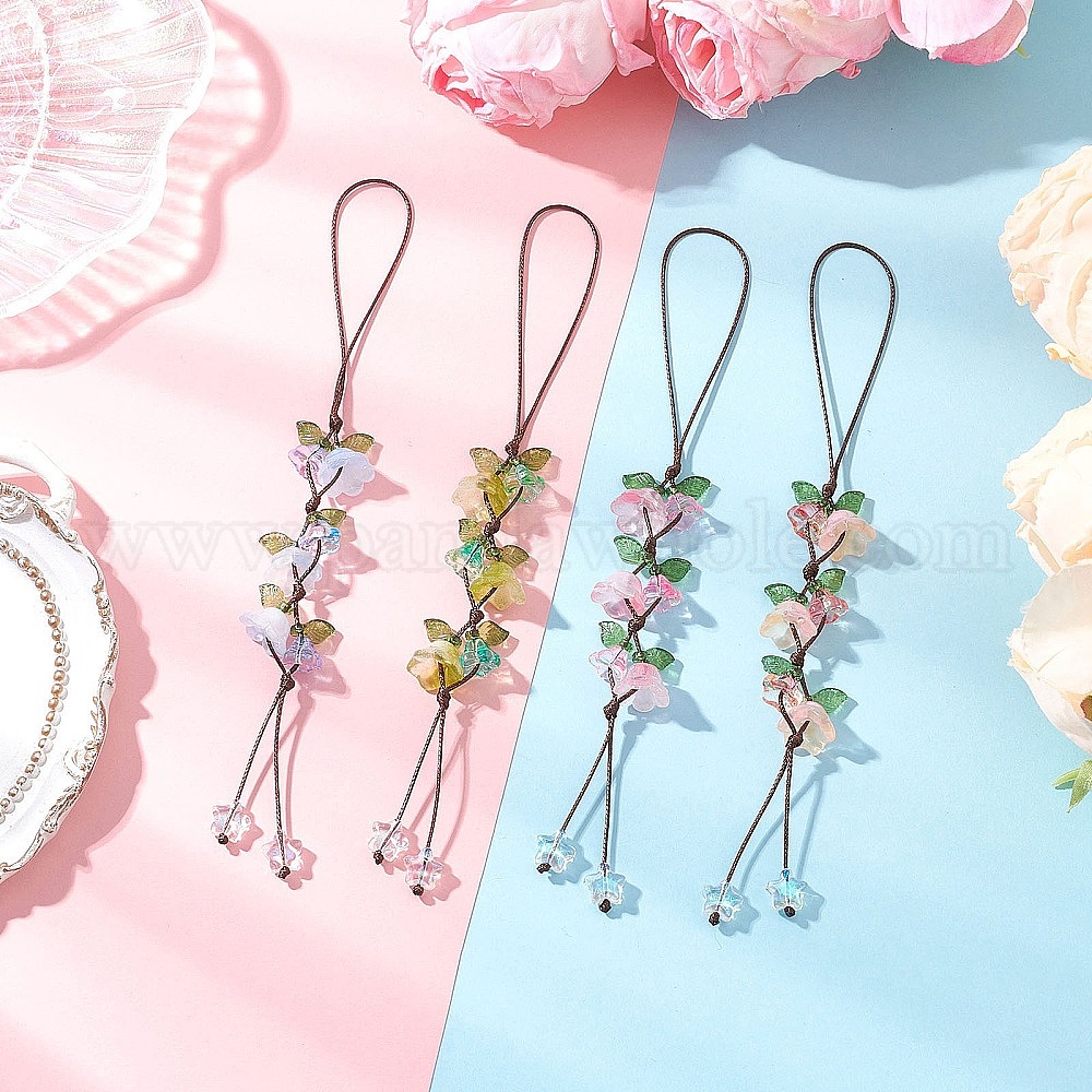 • (52) Непрозрачная лаванда 4 шт. 4 цветов подвесные украшения ручной работы в технике лэмпворк, цветок, с акрилом и стеклом, разноцветные, 155~160 мм, 1 шт / цвет