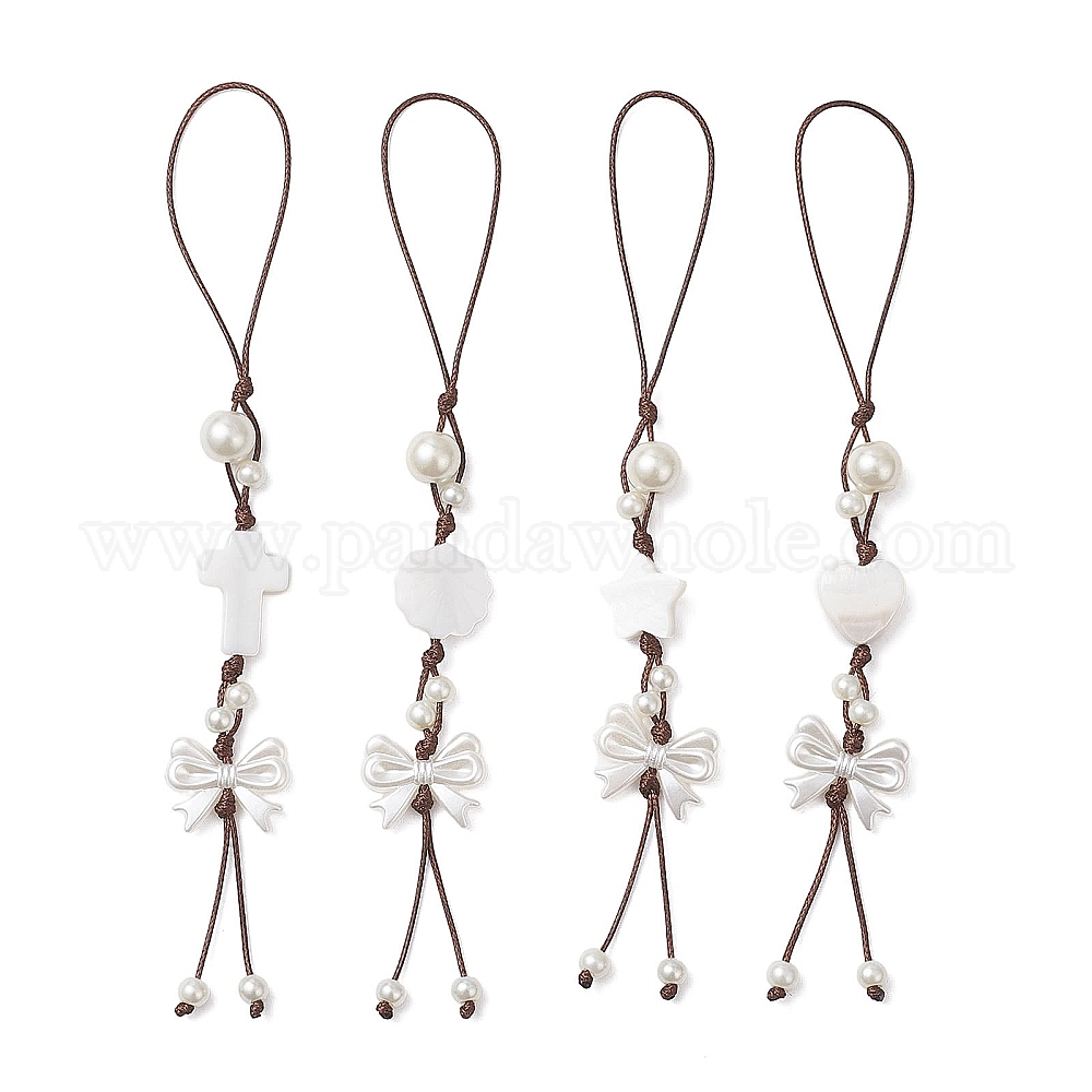 • Кокосово-Коричневый 4 шт. подвесные украшения из ракушек и стеклянных жемчужин, кокосового коричневый, 137~145 мм