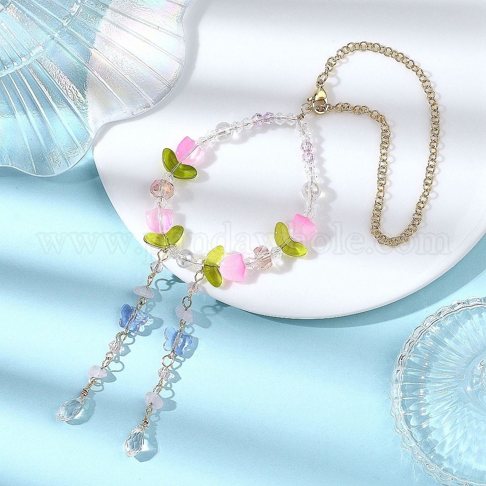 • Разноцветный Подвесные украшения из гальванического стекла и натурального розового кварца, с латунным цианом, для украшения сада и дома, красочный, 230 мм